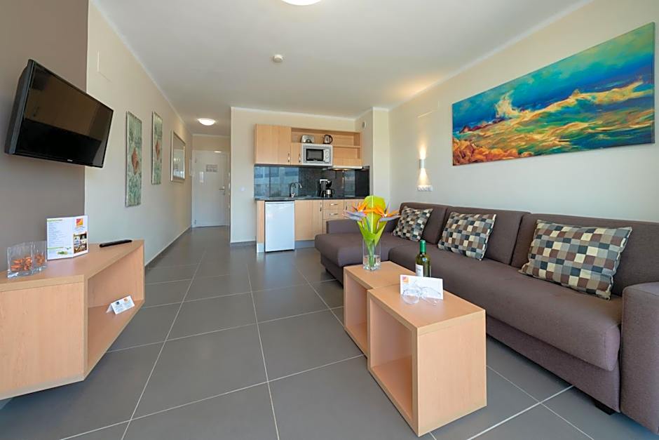 This modern apartment offers a private balcony with views. It has a spacious living room with a sofa bed, flat-screen satellite TV, direct-dial telephone and a laptop safe (for a surcharge). The kitchen area comes with a microwave, ceramic hob and toaster. There is a twin bedroom and a modern bathroom including a hairdryer.